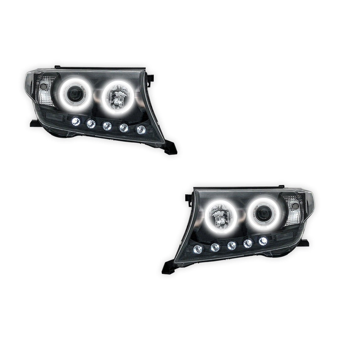 Toyota LandCruiser 200 Series (2007 - 2015) Clear / Black Halo Angel Eyes Headlights LH + RH