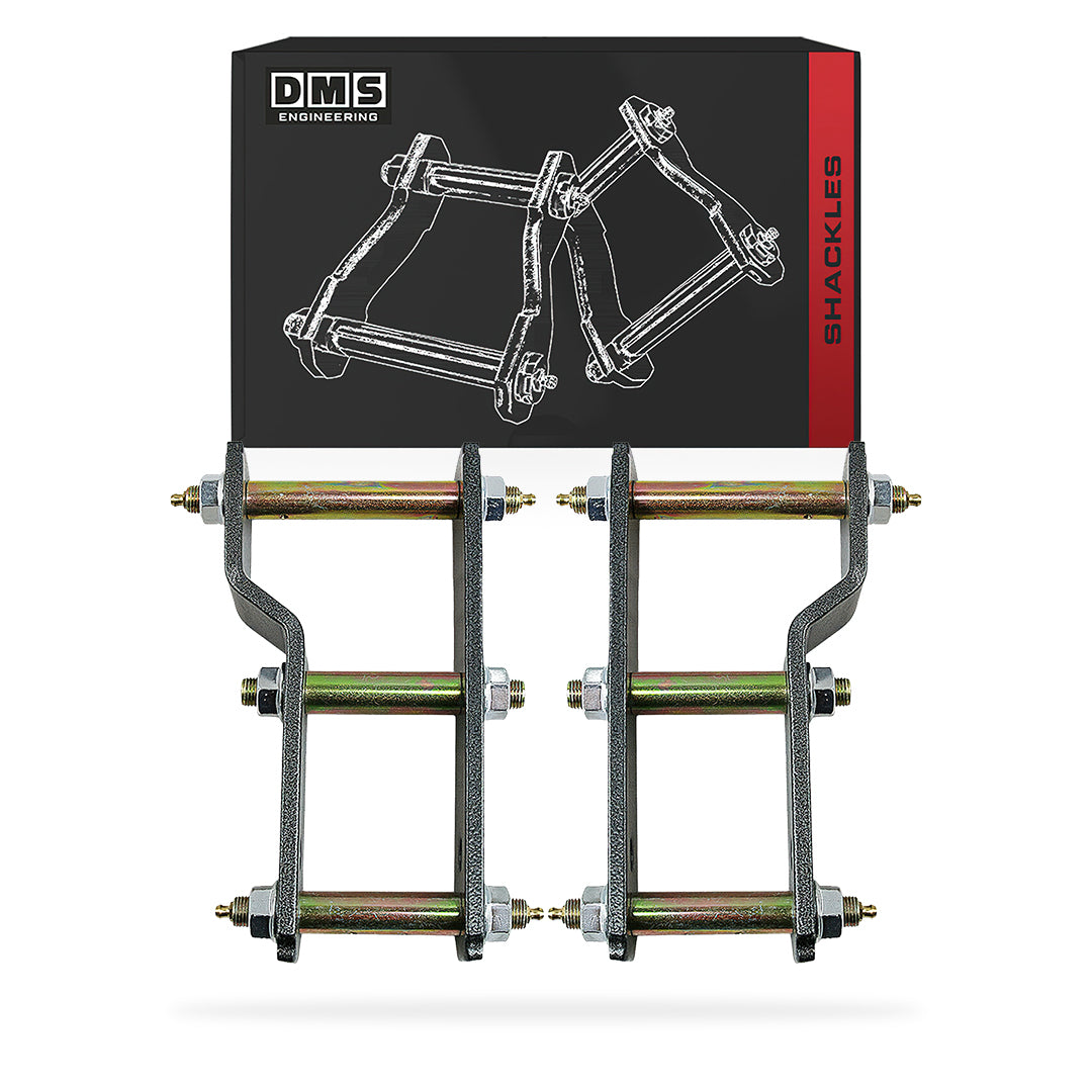 These shackles are often purchased in conjunction with strut spacers, which are used to raise the front of the vehicle, creating a balanced, elevated stance. Find both products in our store to complete your vehicle's suspension upgrade.