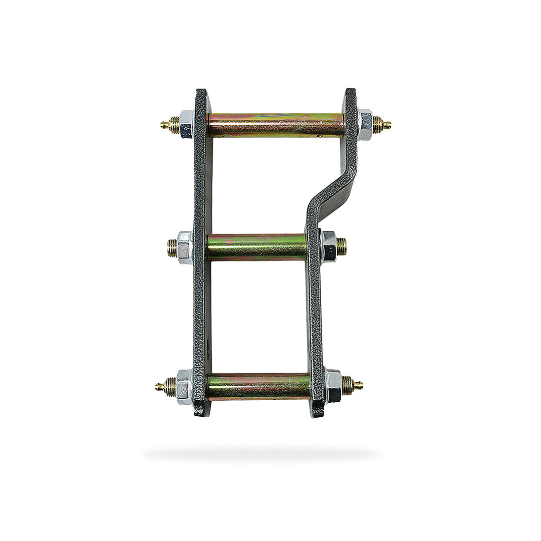 - Greasable Extended Shackles: Comes with grease fittings that allow for regular lubrication, helping to reduce friction and wear between the shackle and the bushings. Regular greasing extends the lift of the bushings and maintains smoother operation.