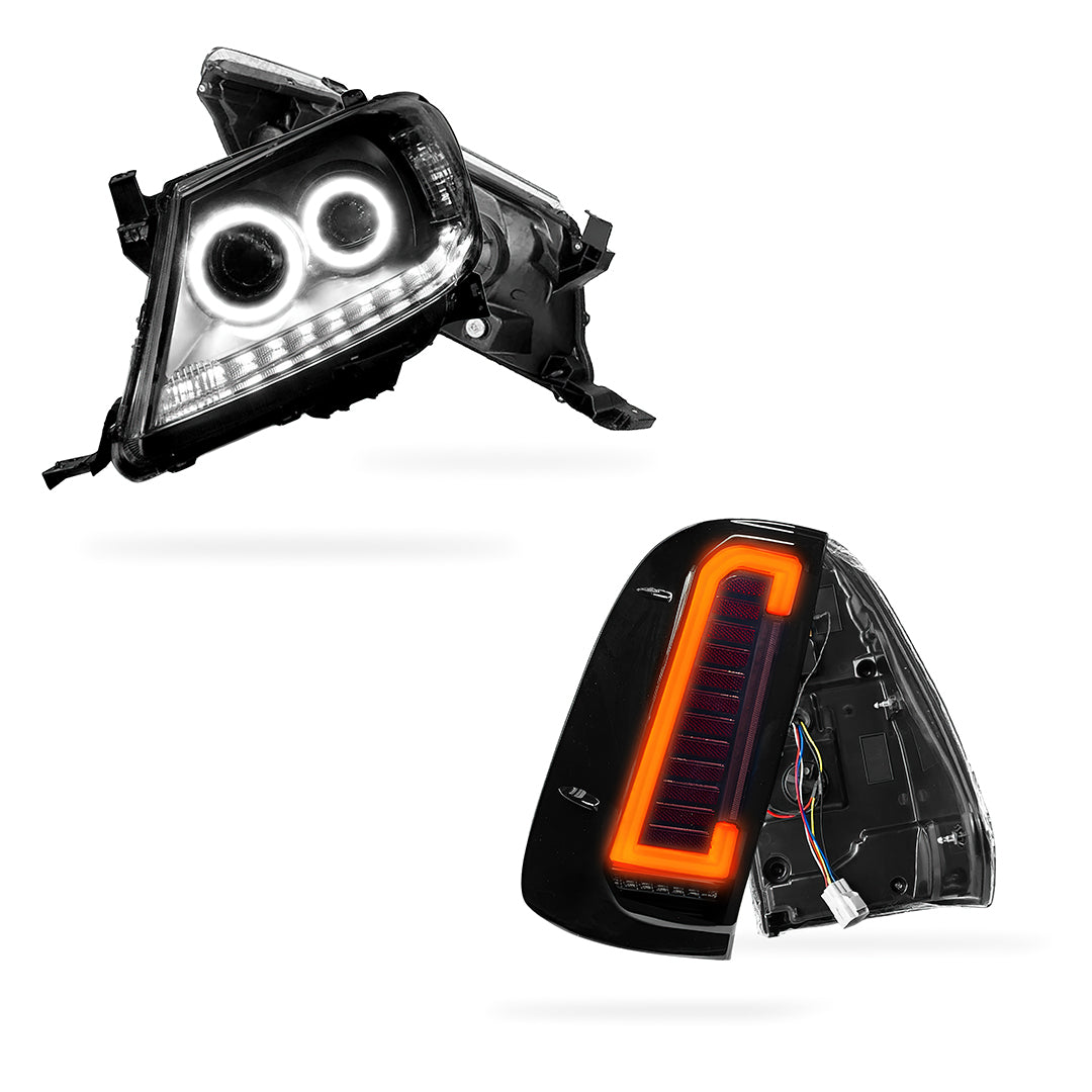 Upgrade your Toyota Hilux N70 (2005 - 2015) with our premium lighting bundle, combining Smoked Black Sequential Tail Lights and Halo Angel Eyes Projector Headlights for a complete transformation in both style and functionality. Designed for seamless compatibility, this kit enhances your 4x4’s rugged presence while improving visibility, safety, and durability in all conditions.
